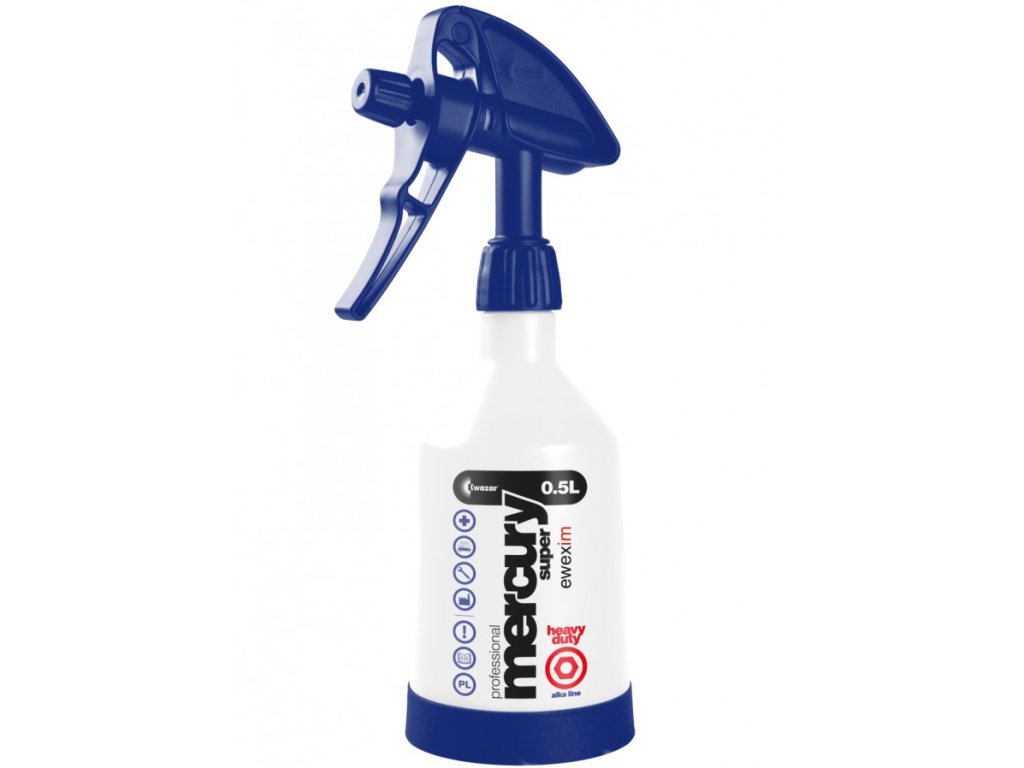 Kwazar Mercury Super Pro+ V-0.5 ALKALINE je profesionální dvojčinný postřikovač o objemu 500 ml, navržený pro použití s alkalickými a chemicky agresivními čisticími prostředky. Díky těsnění z materiálu Viton®, který je odolný vůči silným čisticím prostředkům, je tento postřikovač ideální pro aplikaci agresivních čisticích roztoků, které by běžné postřikovače neunesly. Dvojčinný systém zajišťuje efektivní a rovnoměrné rozstřikování kapaliny, což usnadňuje práci a šetří čas.