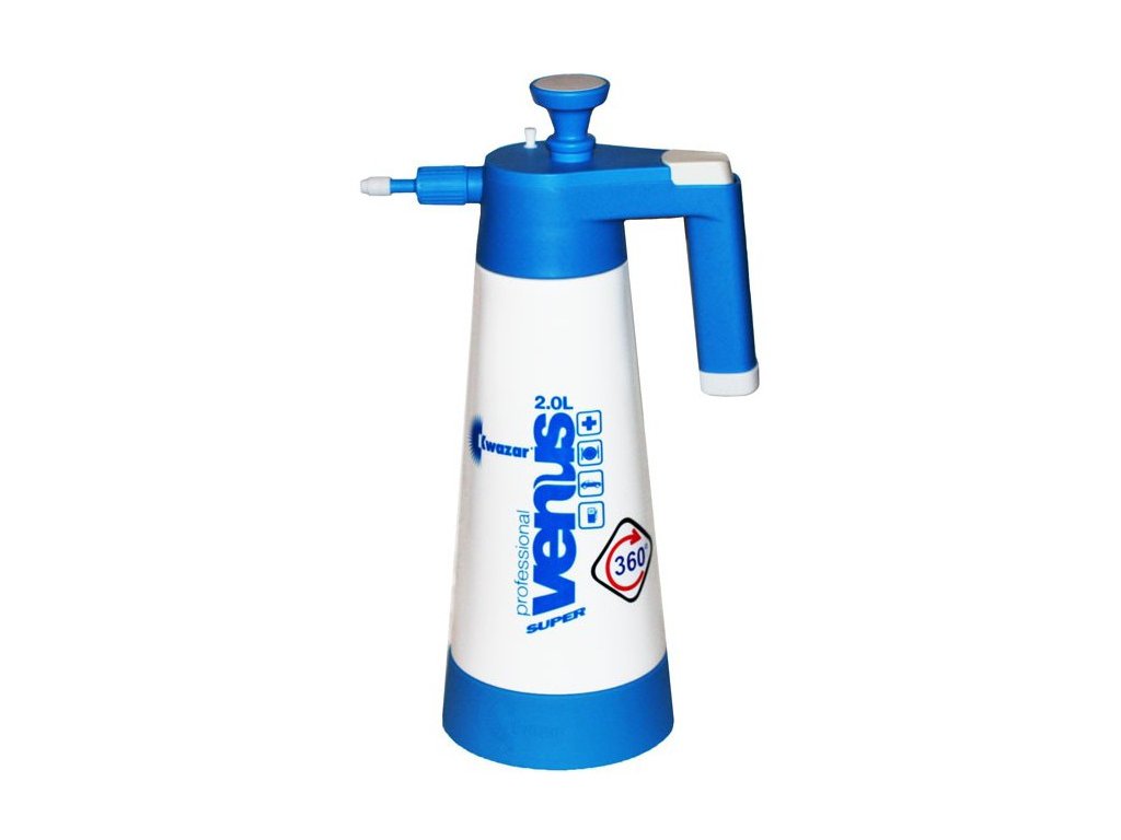 Kwazar Venus Super Pro+ 360 V-2.0 je profesionální ruční tlakový postřikovač s objemem 2000 ml, navržený pro použití s čisticími prostředky a detailingovými roztoky. Tento model je vybaven 360° funkcí, což umožňuje použití postřikovače v jakékoliv pozici, včetně těžko dostupných míst. Díky dvojčinnému systému je aplikace čisticího roztoku efektivní a pohodlná, s rovnoměrným rozprašováním při stisknutí a uvolnění páky. S objemem 2000 ml je ideální pro rozsáhlejší aplikace, kdy je potřeba pokrýt větší plochy.
