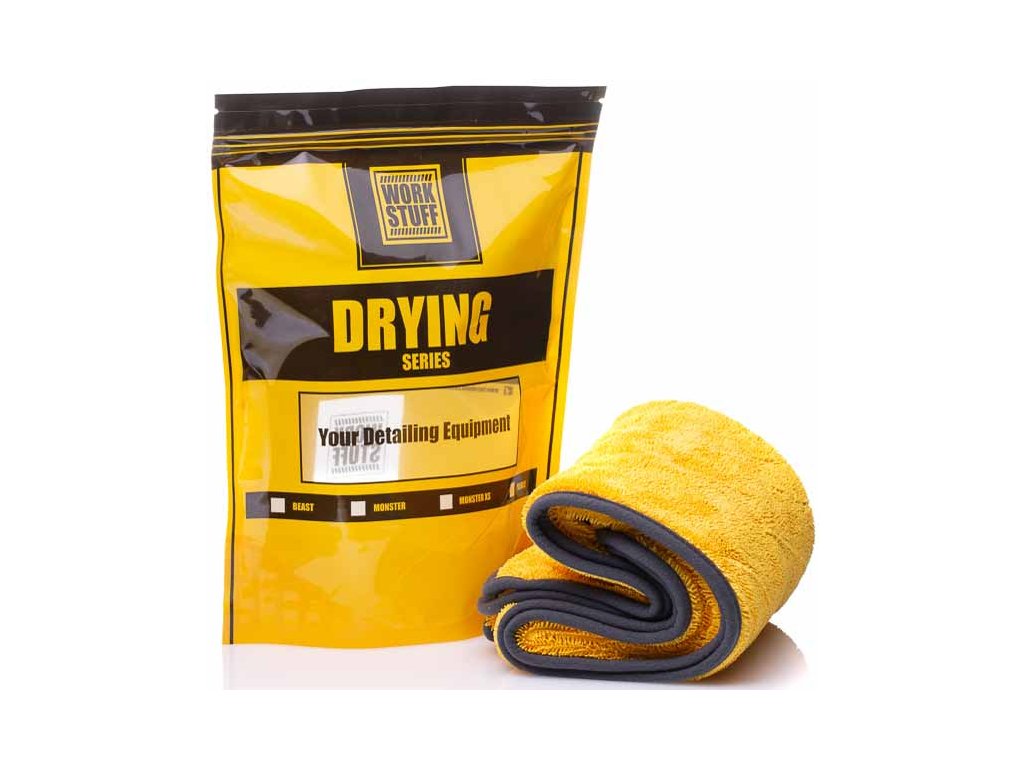 Work Stuff Monster Drying Towel 515 GSM 90x73 cm je výkonný sušící ručník navržený pro rychlé a efektivní sušení vašeho vozidla. Díky hustotě vláken 515 GSM a velkému rozměru 90x73 cm, tento ručník zajišťuje rychlé a důkladné odstranění vody, čímž minimalizuje riziko vzniku šmouh a zanechání vláken na povrchu. Je ideální pro sušení větších ploch, jako je karoserie, střechy nebo kapoty, a poskytuje šetrnou péči o lak a další povrchy vozidla.